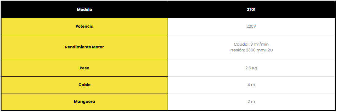 Posee cable de alta flexibilidad de 4 metros con salida cable reforzada y ficha normalizada.